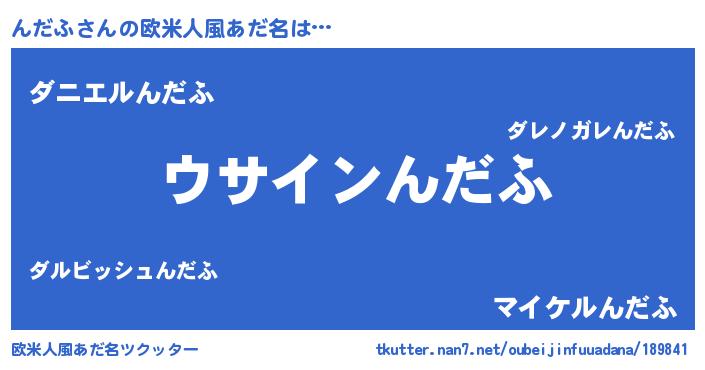 | 男性向けラノベタイトル風あだ名 | 『んだふの嫁は女の子じゃないと思った?』 |