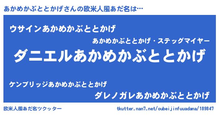 | 女子向けラノベタイトル風あだ名 | 『死神あかめかぶととかげの再婚』 |
