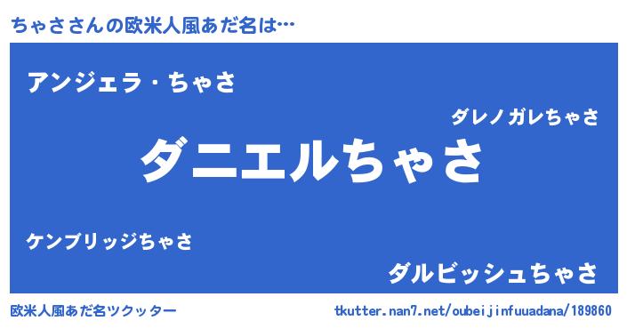 | ヘコむあだ名 | 『ちゃさ(爆)』『ちゃ太郎』 |