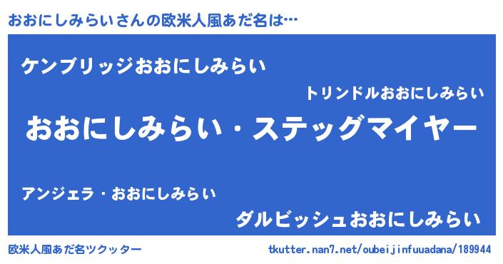 | 意味不明あだ名 | 『自称おおにしみらい』 |