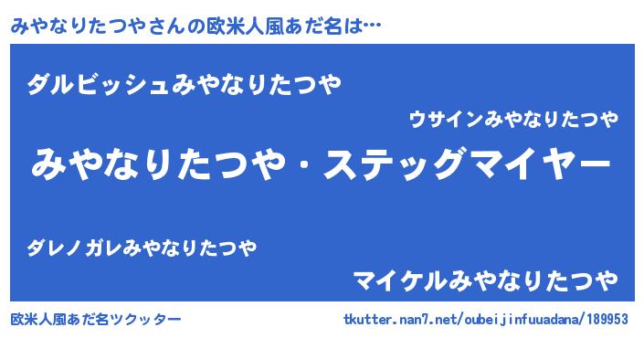 | 男性向けラノベタイトル風あだ名 | 『うちのみやなりたつやが世界を掌握している!』 |