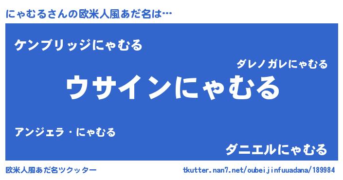| 男性向けラノベタイトル風あだ名 | 『にゃむるの嫁は女の子じゃないと思った?』 |