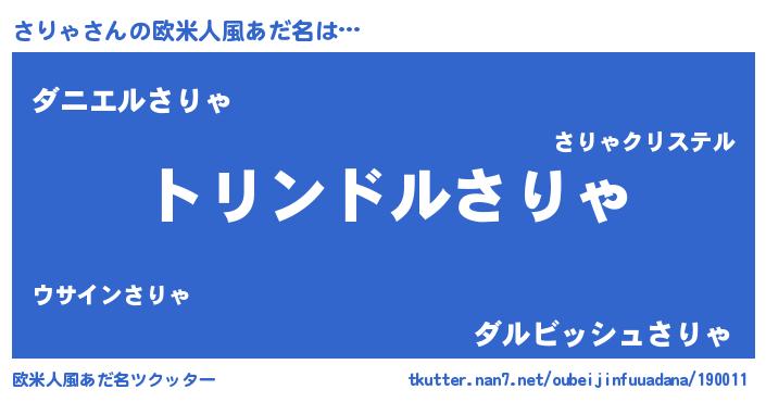 | 男性向けラノベタイトル風あだ名 | 『転生したらさりゃだった件』 |