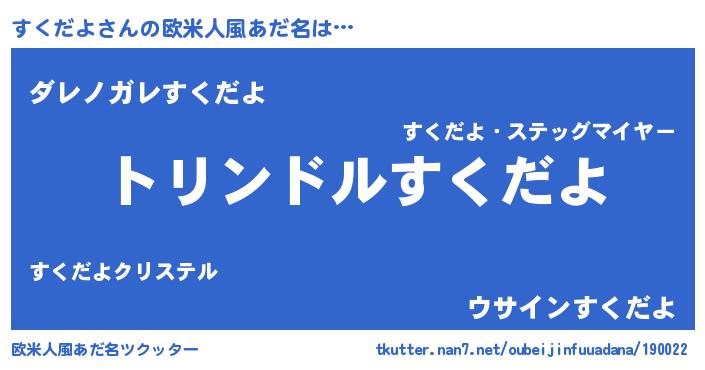| 男性向けラノベタイトル風あだ名 | 『転生したらすくだよだった件』 |