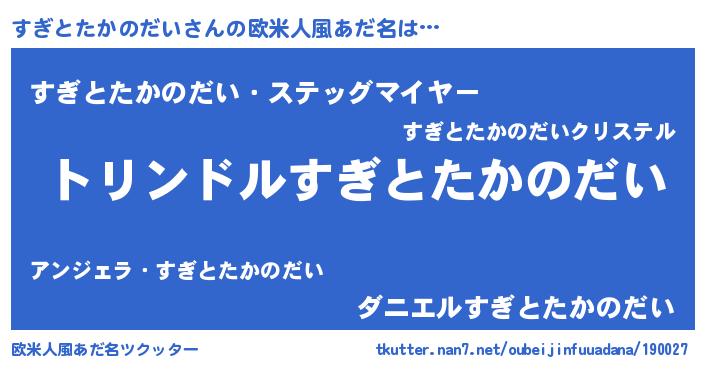 | 男性向けラノベタイトル風あだ名 | 『スギトタカノダイスレイヤー』 |