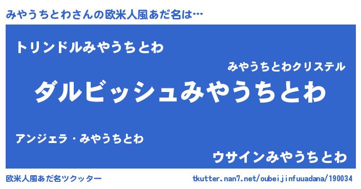 | ヘコむあだ名 | 『みやうちとわ(笑)』『みやぷりん』 |