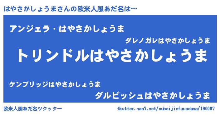| 女子向けラノベタイトル風あだ名 | 『はやさかしょうまの玉の輿計画!』 |