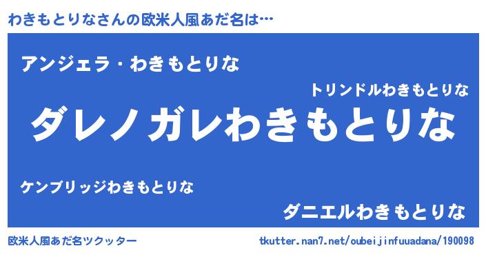 | 意味不明あだ名 | 『住所不定無職わきもとりな(86歳)』 |