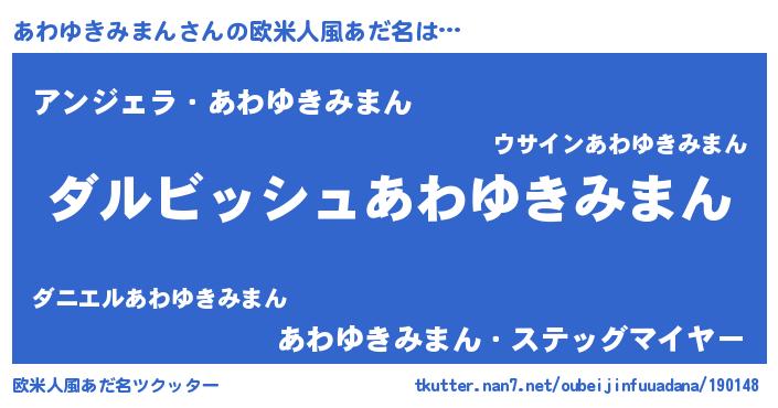 | ヘコむあだ名 | 『あわゆきみまん(遠い目)』『あわぷりん』 |