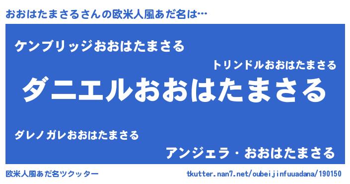 | 男性向けラノベタイトル風あだ名 | 『おまえをオタクにしてやるから、俺をおおはたまさるにしてくれ! 』 |