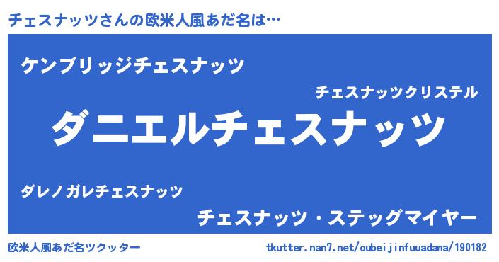 | 女子向けラノベタイトル風あだ名 | 『死神チェスナッツの再婚』 |