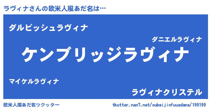 | ヘコむあだ名 | 『ラヴィナ(震え声)』『豆乳』 |