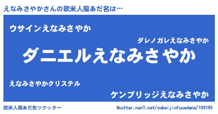 | ポケモン風あだ名 | 『エックウザ』『ヒエナミサヤカ』 |