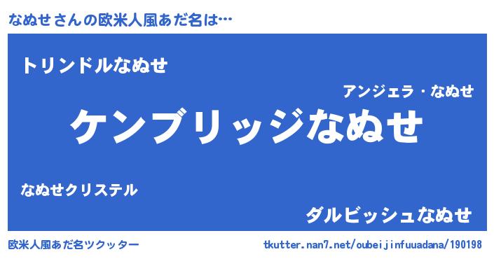 | 男性向けラノベタイトル風あだ名 | 『Re:なぬせから始める異世界生活』 |