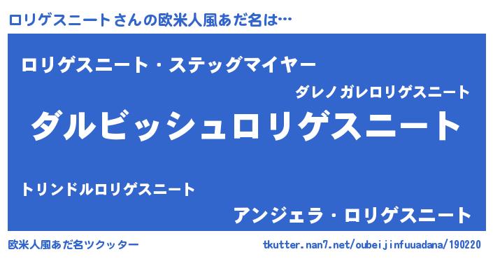 | 意味不明あだ名 | 『永久保存ロリゲスニート』 |