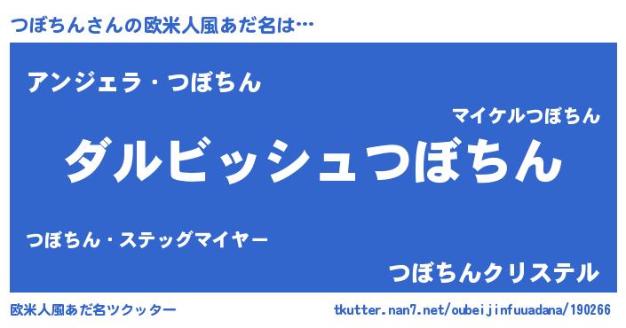 | ヘコむあだ名 | 『つぼちん(苦笑)』『なまこ酢』 |