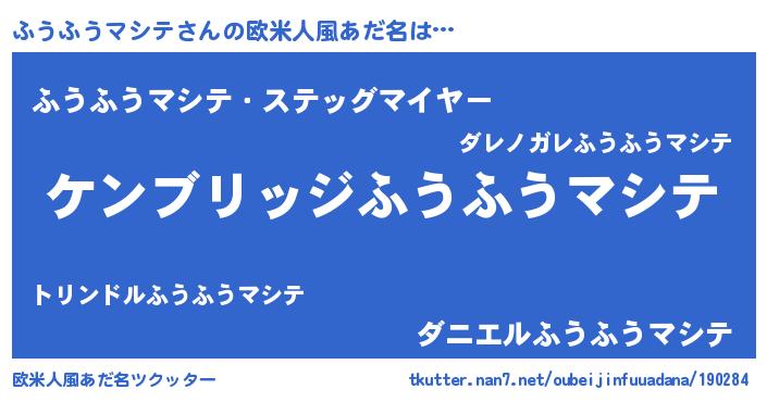 | 男性向けラノベタイトル風あだ名 | 『Re:ふうふうマシテから始める異世界生活』 |