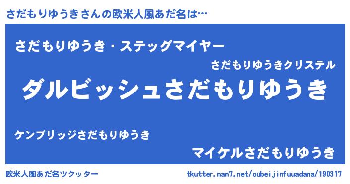 | 男性向けラノベタイトル風あだ名 | 『さだもりゆうきという概念が存在しない退屈な世界 』 |