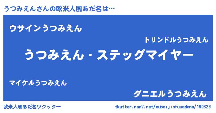 | 男性向けラノベタイトル風あだ名 | 『うちのうつみえんが世界を掌握している!』 |