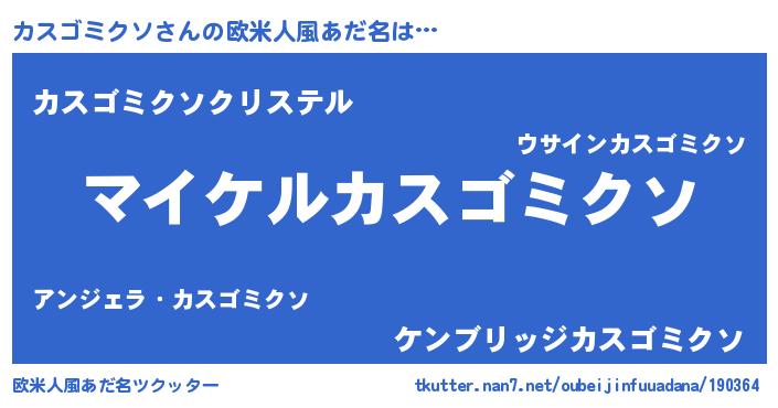 | 男性向けラノベタイトル風あだ名 | 『カスゴミクソの憂鬱』 |