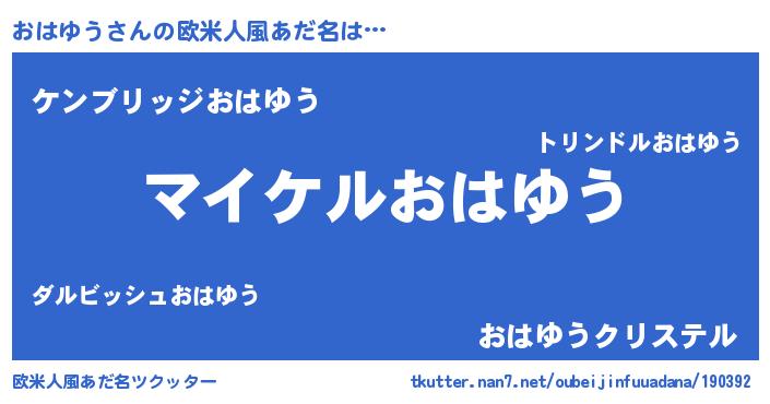 | 男性向けラノベタイトル風あだ名 | 『オハユウアートオンライン』 |