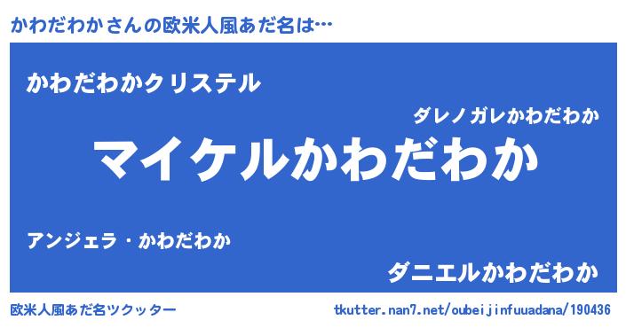 | 男性向けラノベタイトル風あだ名 | 『カワダワカアートオンライン』 |