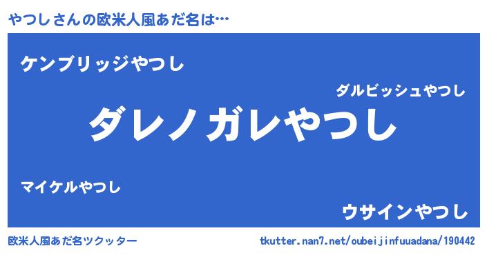 | 男性向けラノベタイトル風あだ名 | 『魔弾の王とやつし』『やつしの憂鬱』 |