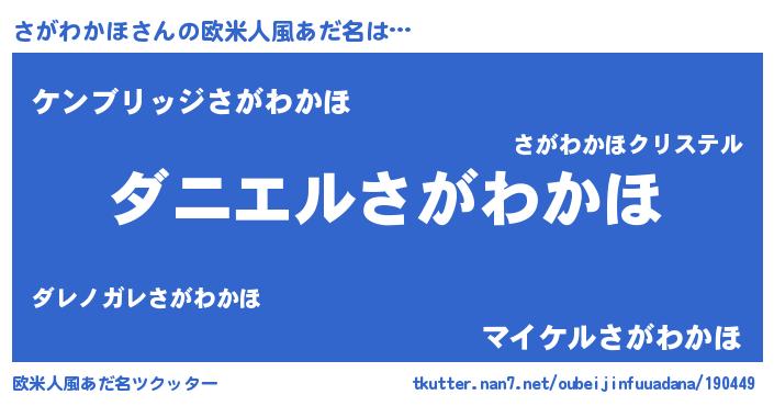 | 男性向けラノベタイトル風あだ名 | 『おまえをオタクにしてやるから、俺をさがわかほにしてくれ! 』 |