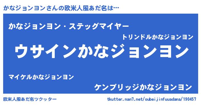 | 男性向けラノベタイトル風あだ名 | 『かなジョンヨンの嫁は女の子じゃないと思った?』 |
