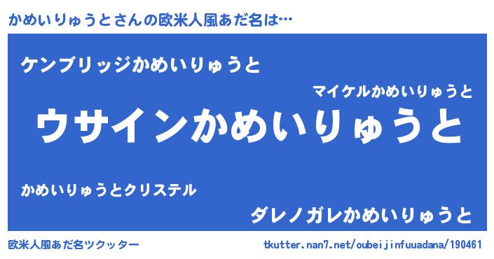 | 男性向けラノベタイトル風あだ名 | 『ダンジョンにかめいりゅうとを求めるのは間違っているだろうか』 |