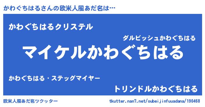 | 男性向けラノベタイトル風あだ名 | 『カワグチハルアートオンライン』 |