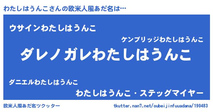 | 男性向けラノベタイトル風あだ名 | 『この素晴らしい世界にわたしはうんこを!』 |