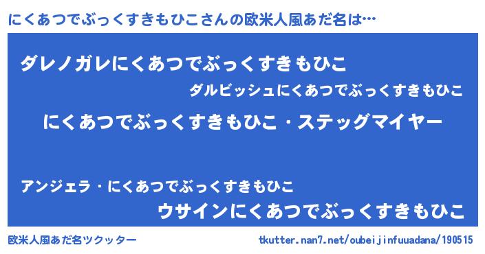 | ピコ太郎風あだ名 | 『ニク四郎』『ピコニ郎』『ニニ太郎』 |