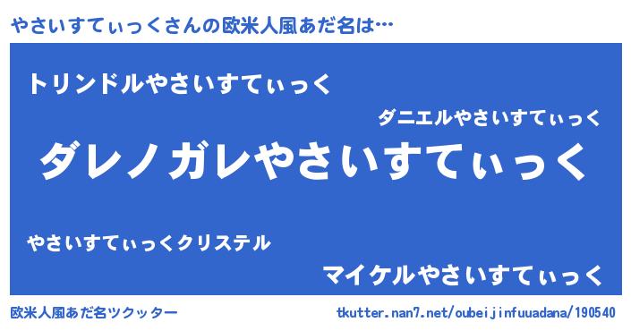 | 意味不明あだ名 | 『住所不定無職やさいすてぃっく(93歳)』 |