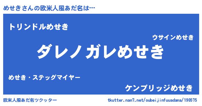 | 男性向けラノベタイトル風あだ名 | 『魔弾の王とめせき』『メセキスレイヤー』 |