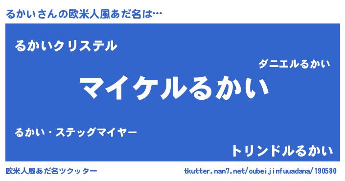 | 男性向けラノベタイトル風あだ名 | 『るかいの憂鬱』『緋弾のルカイ』 |