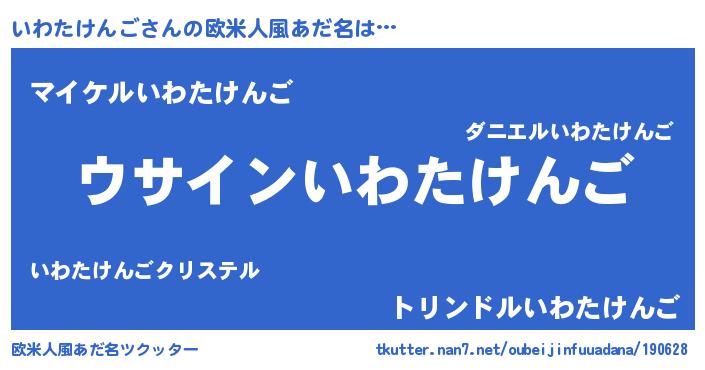 | 男性向けラノベタイトル風あだ名 | 『いわたけんごの嫁は女の子じゃないと思った?』 |