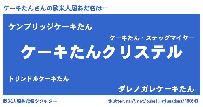 | 意味不明あだ名 | 『ケーキたんフォーエバー』 |