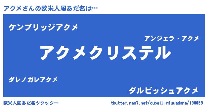 | 意味不明あだ名 | 『アクメフォーエバー』『自称アクメ』 |