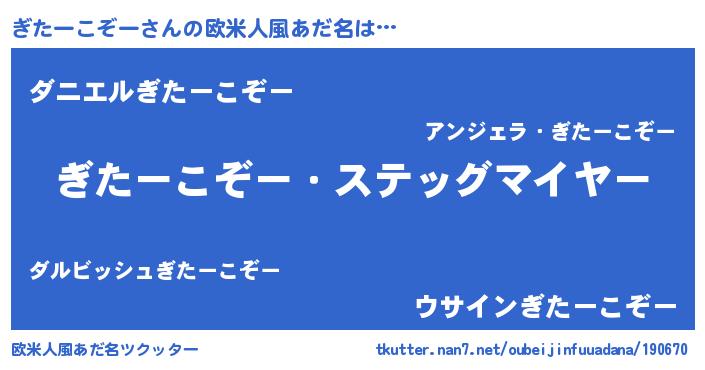 | 男性向けラノベタイトル風あだ名 | 『うちのぎたーこぞーが世界を掌握している!』 |