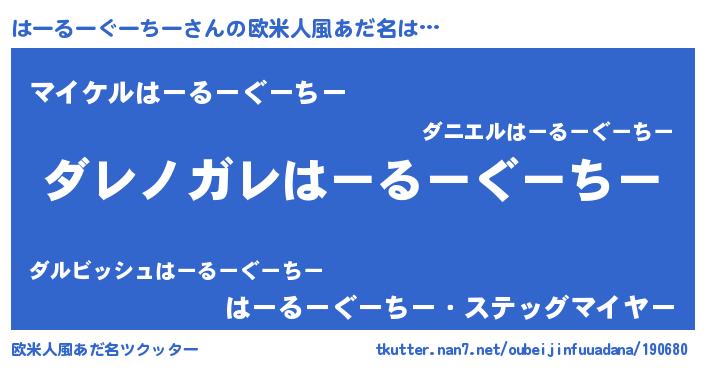 | 意味不明あだ名 | 『住所不定無職はーるーぐーちー(79歳)』 |