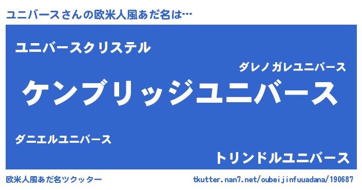 | 男性向けラノベタイトル風あだ名 | 『Re:ユニバースから始める異世界生活』 |
