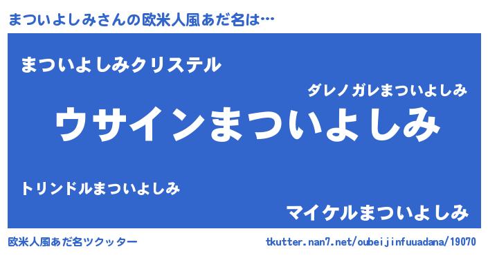 | 意味不明あだ名 | 『とにかく怪しいまついよしみ』 |