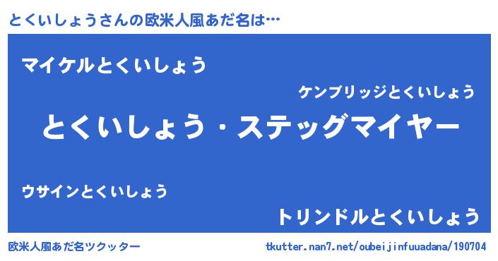 | ピコ太郎風あだ名 | 『トコ次郎』『トク一郎』『ピト次郎』 |
