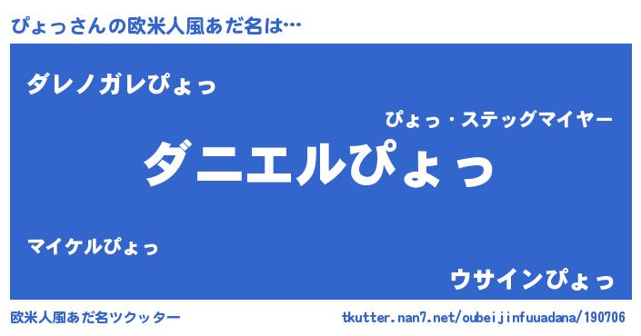 | ヒーロー風カッコイイあだ名 | 『正義の使者ぴょっ』『仮面ピョダー』 |