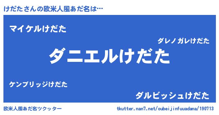 | ヘコむあだ名 | 『けだっふぃ~』『けだた(笑)』 |