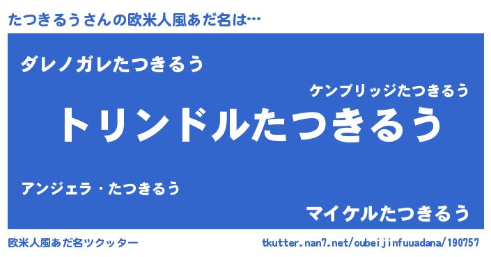 | 男性向けラノベタイトル風あだ名 | 『転生したらたつきるうだった件』 |
