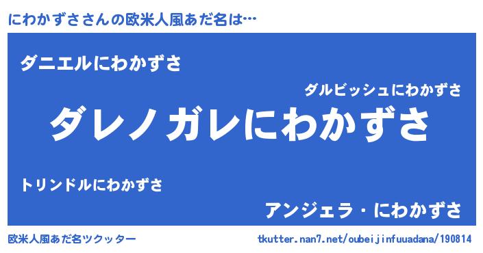 | 男性向けラノベタイトル風あだ名 | 『この素晴らしい世界ににわかずさを!』 |