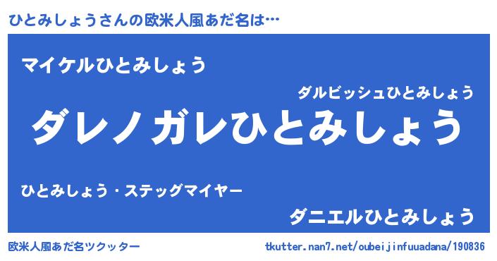 | 男性向けラノベタイトル風あだ名 | 『この素晴らしい世界にひとみしょうを!』 |