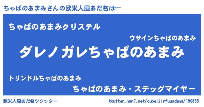 | 男性向けラノベタイトル風あだ名 | 『この素晴らしい世界にちゃばのあまみを!』 |